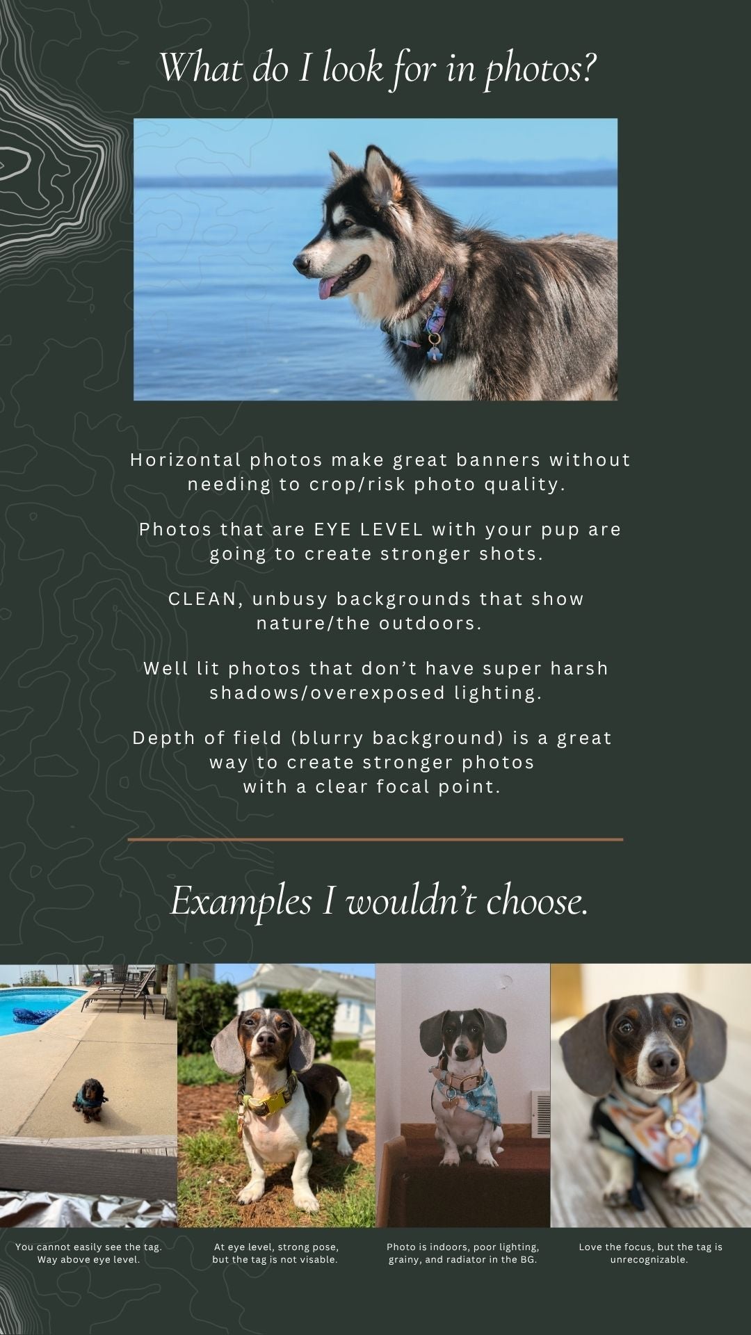 Outlined below is the process for choosing website and Instagram photos, offered as a guide rather than a requirement. It is not mandatory that you follow these processes. I simply wanted to let you know what I look for.