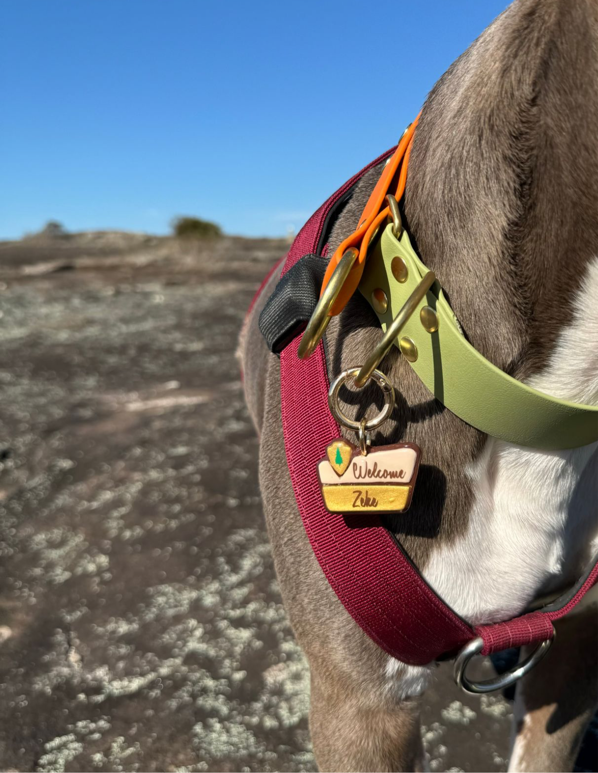 Welcome to your next adventure with the iconic National Park Welcome Sign dog tag. Made from durable polymer clay and coated in resin, this dog tag will be a lasting reminder of your unforgettable journey. Show off your love for the great outdoors and the memories made with this unique and expertly crafted sign.