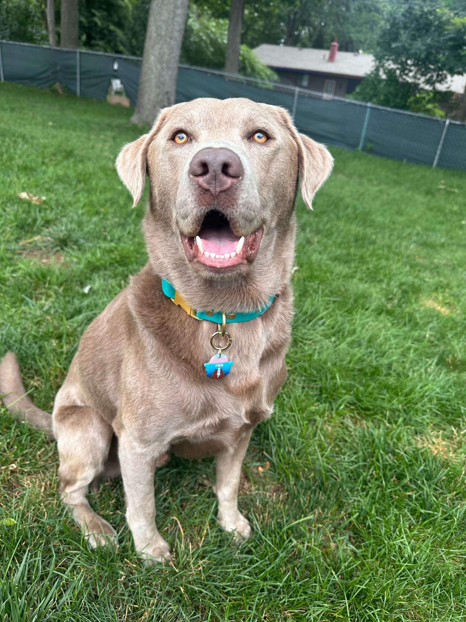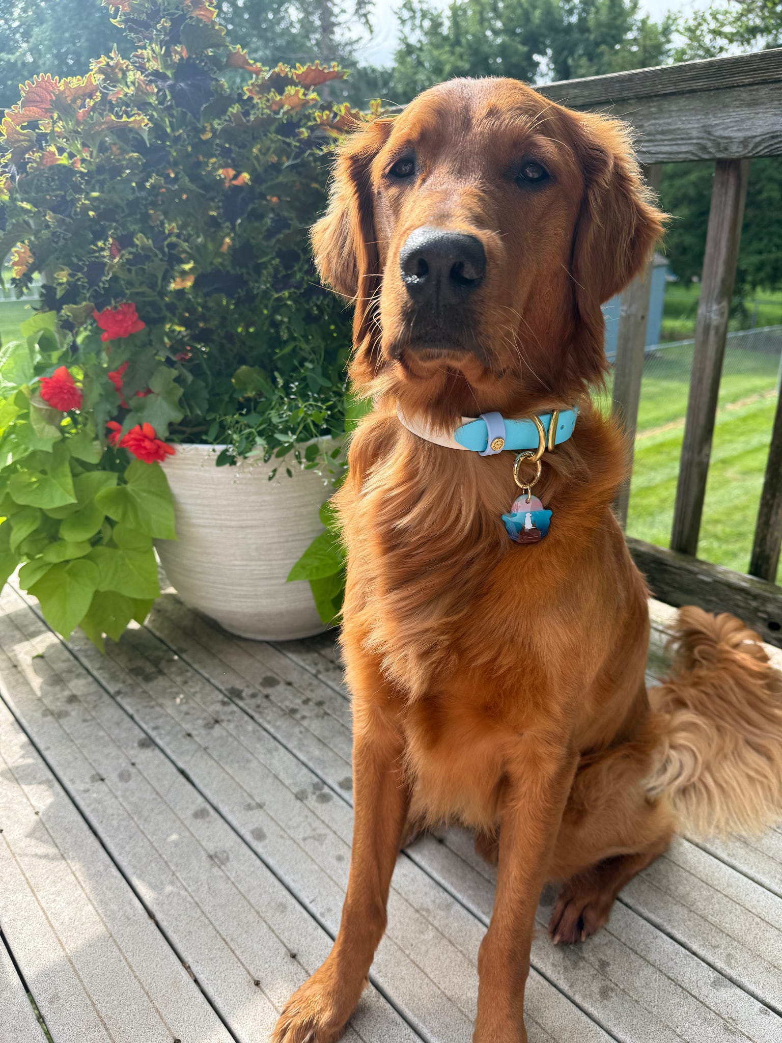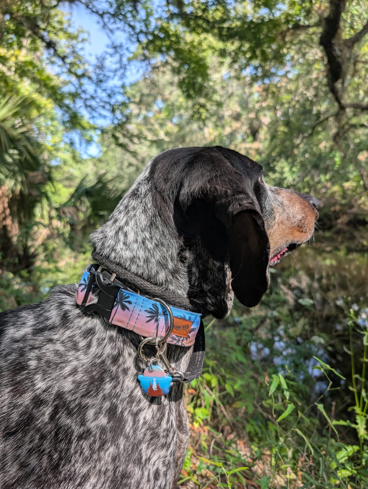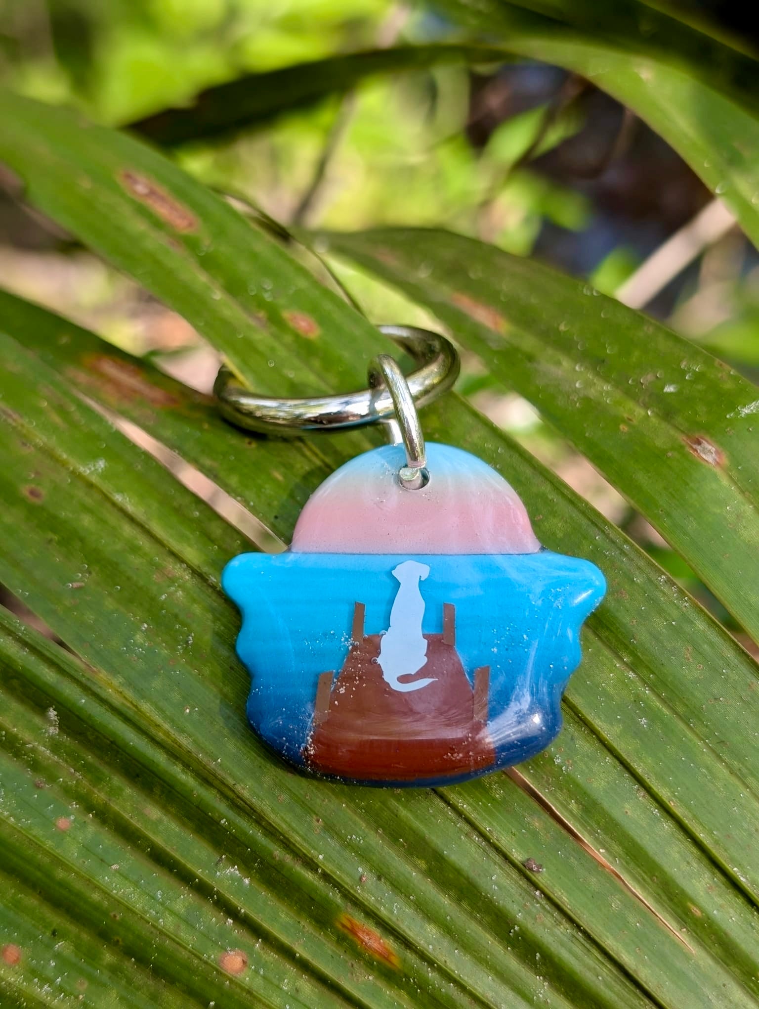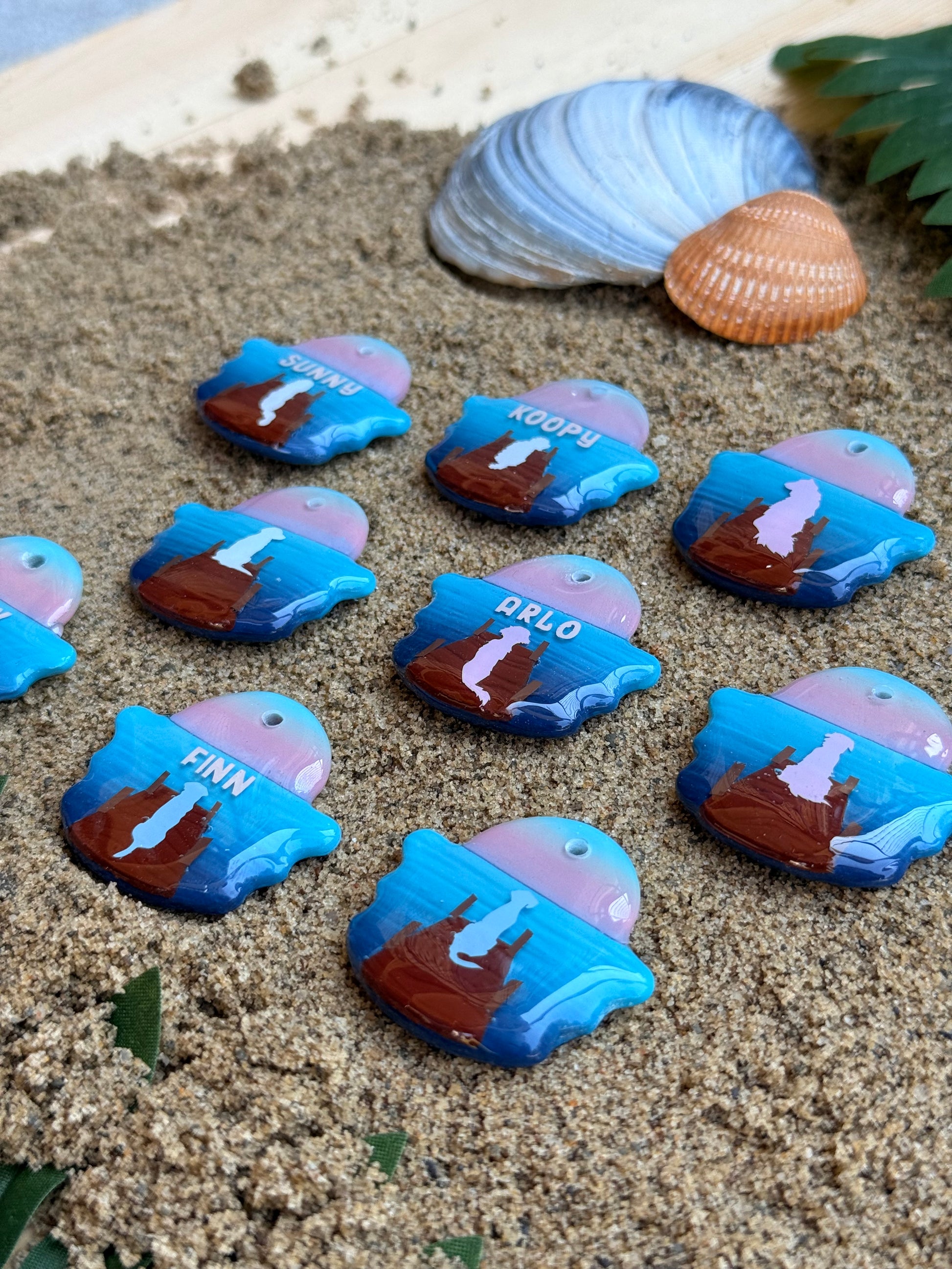 Enjoy a peaceful moment on the pier with our custom silhouette tag. Whether your dog is looking out over a lake or the ocean, this tag captures the essence of both.